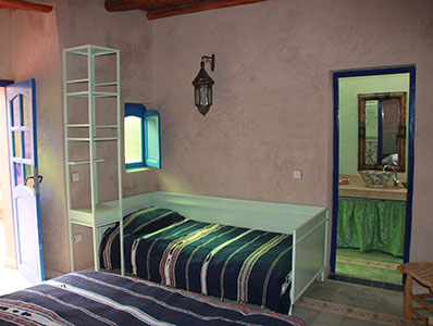 Chaque chambre bénéficie d’une atmosphère unique très marocaine dans 3 teintes différentes (rouge, bleu, verte).